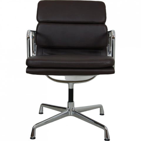 Charles Eames EA-209 stol betrukket med sort læder, med krom armlæn og stel. Stolen er fra 1990'erne og fremstår i pæn stand, med patineret læder, og med et par små ridser på armlænene. Stolen har drejefod med tilt, men uden højdejustering. •Designer: Charles Eames •Producent: Vitra •Produktions år: 1990'erne •Model: EA-209 •Mål: Højde 102 / Bredde 52,5 / Dybde 59 / Sædehøjde 46 Cm •Materialer: Sort læder og krom •Funktioner: Drejefod, tilt, og returdrej •Stand: Brugt Charles Eames EA-209 kontorstol i sort læder.
