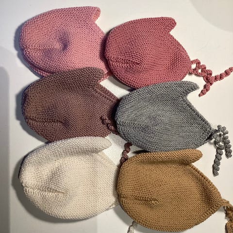De 5 første er str 3mdr, den mørkeblå og lysegrønne alpakka str 6 mdr