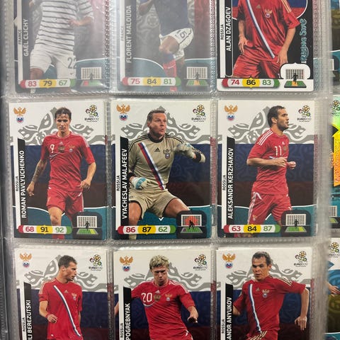 Samlingen består af forskellige fodboldkort med spillere fra klub- og landshold.