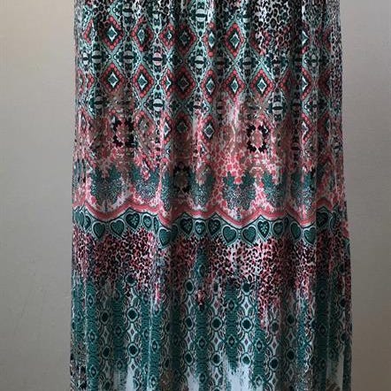 Mål er taget, hvor kjolen ligger fladt, stoffet kan give sig en del