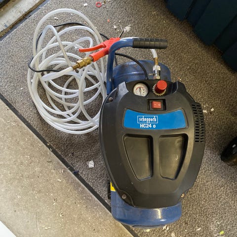 Selekta luftkompressor med 24 liters tryktank. Se detaljer på billede. Velegnet til almindelige trykluftopgaver i værksted eller garage, hvor der er behov for en mobil kompressor med mindre tankvolumen. Fungerer fint.