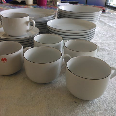 Atalier spisestel 30 dele hvid m. sort kant.