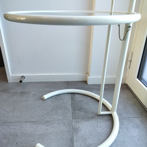 Eileen Gray E1027, ikonisk hvid sidebord og glas