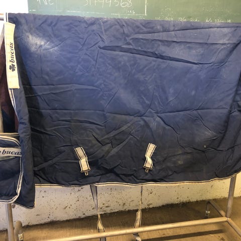 Bucas Celtic Stable Extra stalddækken i størrelse 145 cm. Svarer til 300g og den er lille i størrelse svarende til 140 cm. Dækkenet er i navy med kontrastfarvet inderside. Det er beregnet til brug i stalden og har lukninger foran samt justerbare stropper. Velegnet som varmt og beskyttende dækken til hest i boksen.