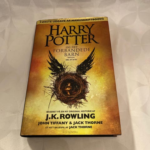 J.K. Rowling Harry Potter og det forbandede barn bog på dansk. Bogen er den ottende historie i Harry Potter-universet og foregår nitten år efter de oprindelige bøger. Teksten er udformet som et skuespilmanuskript, baseret på en original historie af J.K. Rowling, John Tiffany og Jack Thorne. Udgivet af Gyldendal. Velegnet til læsere, der følger Harry Potter-serien og ønsker fortsættelsen af fortællingen i dansk oversættelse.
