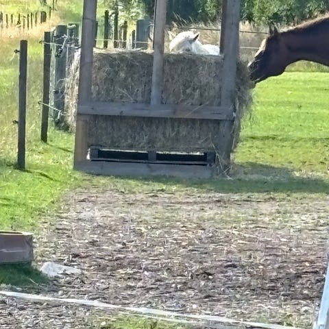 Høhæk med tag til hest. Foderkassen er udført i træ og er velegnet til udendørs brug på folden. Konstruktionen har sider med åbninger, så hesten kan trække høet ud, og et fast tag, der beskytter foderet mod regn og fugt med tagpap. Egner sig til opbevaring og udfodring af hø eller wrap til heste i indhegninger eller på mark. Der er solceller med to lamper indenunder taget. Under 6 mdr gammelt. Kan afhentes på Lolland.