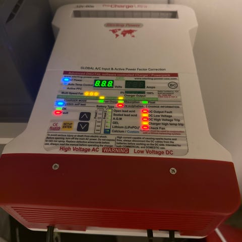 Clayton LPS 1500W 120Ah strømforsyning. Enheden har integreret display, der viser batteristatus med oplysninger som resterende driftstid, kapacitet, effekt og spænding pr. celle. Velegnet som fast installeret strømforsyning eller backup-strøm i f.eks. køretøjer eller andre installationer, hvor der er behov for 12 V/230 V strøm fra batteri. Enheden har tilslutningsmuligheder på fronten, herunder stik og betjeningspanel.