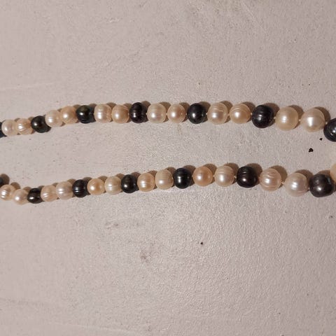 Halskæde, perler, Shario Perler, Virkelig flot dobbelt perlekæde i ferskvands med sølvlås som dekoration med guldprik som pynt. Den er blevet trådet om i 2016. Det fremstår flot og elegant. PRISEN ER FAST. Skal helst afhentes. KUN SERIØSE HENVENDELSER