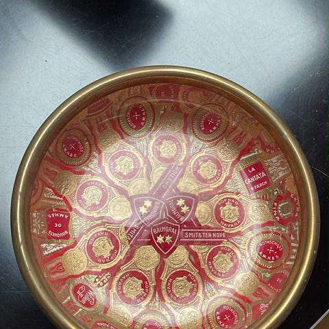 Cylinderformet beholder med en højde på 25 cm, designet til at ligne pbevaring af cigaretter eller cigarer. Beholderen er lavet af metal og dekoreret med en retro-illustration og teksten 'Independence'. Der er en skumindsats i toppen for ekstra beskyttelse af indholdet.