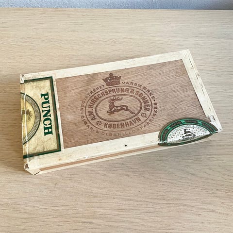 Dekorativ metal "cigar" beholder str. 25 cm med pin-up