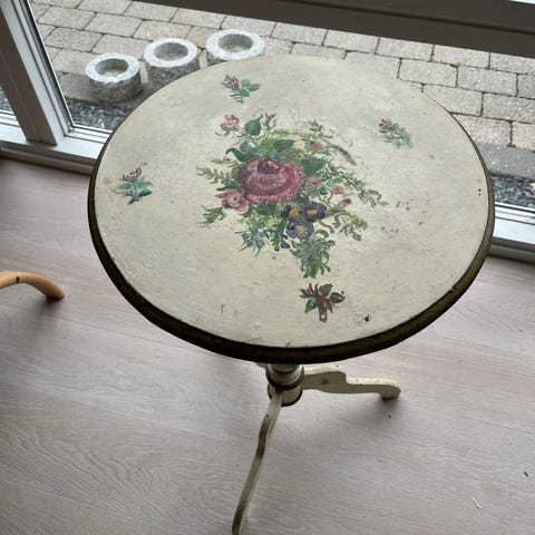 Bordet måler ca. 69 cm i højden, og ca. 30x30 cm på det bredeste sted.