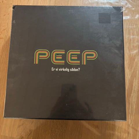 Peep brætspil med teksten "Er vi virkelig sådan?" på æsken. Spillet leveres i en sort æske med farverigt logo på låget. Egnet som selskabsspil til flere deltagere. Fejler intet. 2 pakker kort stadig uåbnet. Fra røgfrit hjem