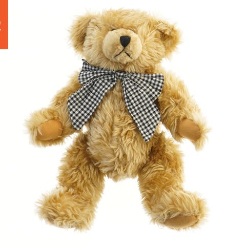 En sød lilla puttebamse formet som en enhjørning med øjne og næse i enkel stil. Dens mave har et regnbueprint, og den har en lille horn på toppen af hovedet. Bamsens struktur er af blødt strikket tekstil og føles behagelig at kramme. Størrelsen er 25x30 cm.