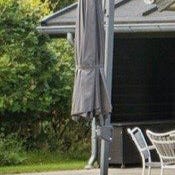Denne elegante hængeparasol med LED-belysning er et perfekt valg til at skabe skygge og beskytte dig imod solens skadelige UV-stråler.