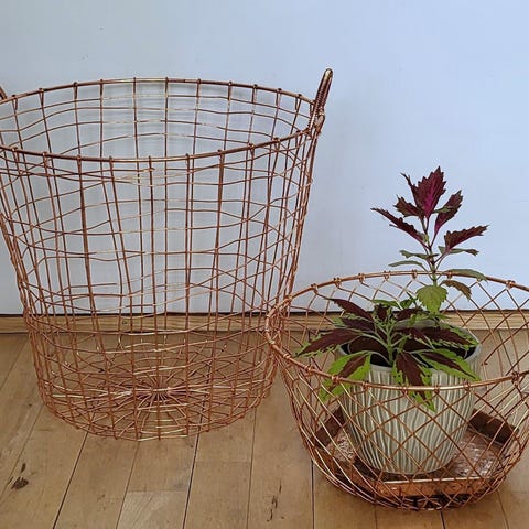 Retro Teak og Kobber metal kurv (str. 29 cm)