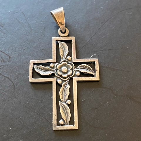 Stort gammelt sølvkors.