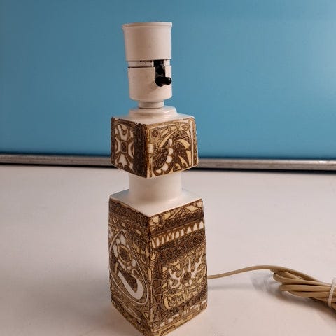 Royal Copenhagen bordlampe i kunstfajance - en del af Tenera-serien hvor forskellige markante kvindelige kunstnere i 1960-1970erne indgik i samarbejde med Royal Copenhagen.