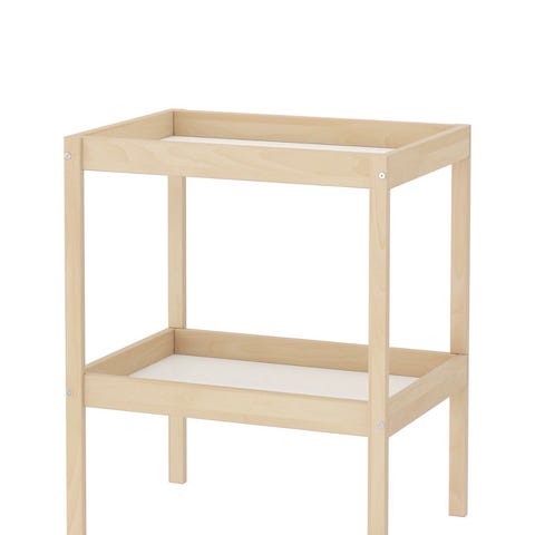 Stokke puslebord i lyst naturtræ med buet form. Bordet er udstyret med polstret puslemadras i lys farve, der dækker hele puslefladen. Ved siden af puslefladen er der to aftagelige plastkurver til opbevaring af bleer, tøj eller tilbehør. Der medfølger en plade der kan fæstes under puslefladen.