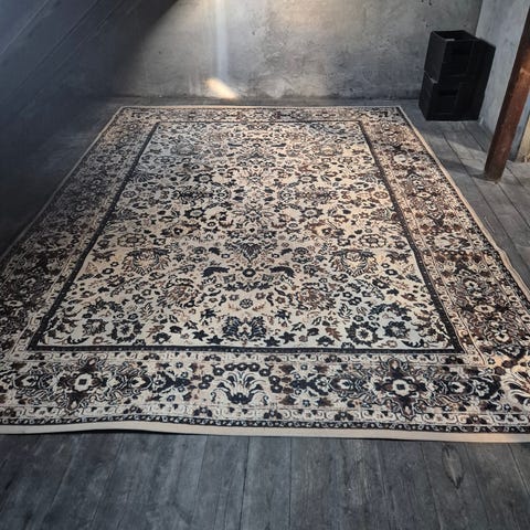 Super flot tæppe sælges. Jeg har selv købt det af en privat tæppehandler i Århus, kender ikke origin. To pletter på tæppet, se billeder. Ikke forsøgt fjernet.