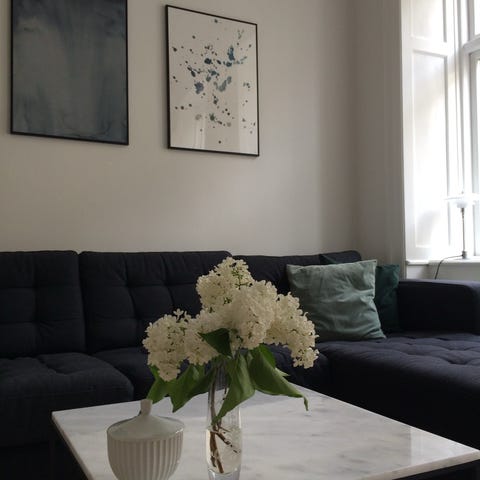 Square marmor sofabord i hvidt. Udgået farve.