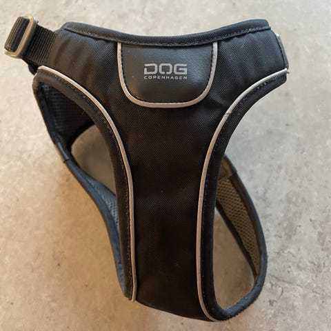 sele til hund med reflekterende detaljer. Selen er ergonomisk udformet med polstrede remme og justerbare spænder ved hals og bryst. Velegnet til daglige gåture og aktiviteter med hunden, hvor der ønskes god bevægelsesfrihed og synlighed. Den er ubrugt.