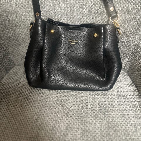 Anden taske, Dune, Sort velour taske/ rygsæk med flot for. Ca 25 x 22 cm