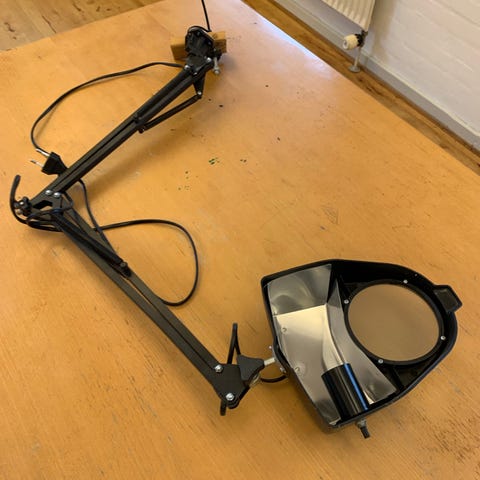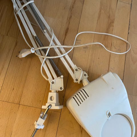 Lup-lampe med justerbar fjederarm.