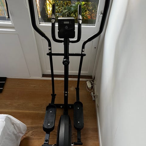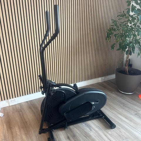 Crosstrainer til hjemmetræning. Egnet til konditionstræning og helkropstræning med både ben- og armbevægelser. Velegnet til indendørs brug i f.eks. bolig eller kælder. Kablet til display blev desværre klippet over ved en fejl ved udpakning