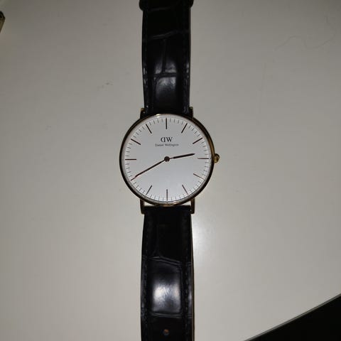Daniel Wellington armbåndsur til unisex med hvid urskive og sort rem. Uret har analog visning med minimalistiske time- og minutmarkeringer samt en rund urkasse i metal. Remmen er i sort materiale med klassisk lukning. Velegnet som hverdagsur til både mænd og kvinder.