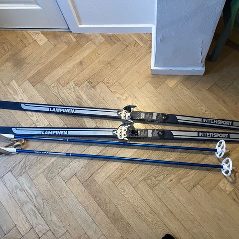 Landsem touring 61, langrendski 195 cm med staver 150 cm og en pose.