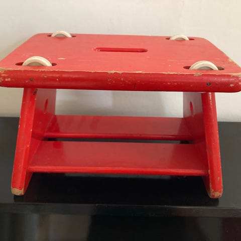 2 børneskamler i træ i mintgrøn farve. elegnet til brug på børneværelse, ved bord eller som ekstra siddeplads. Overfladen fremstår malet med enkelte brugsspor, som ses på billederne.