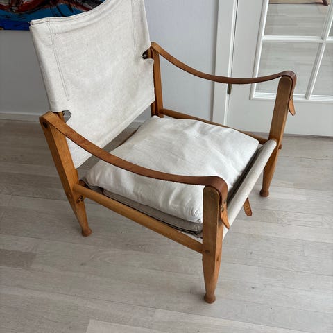 Rigtig fin designerstol. Nyt betræk i 2021 i sandfarvet kanvas