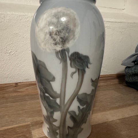 Bing & Grøndahl-vase med håndmalet mælkebøtte-motiv