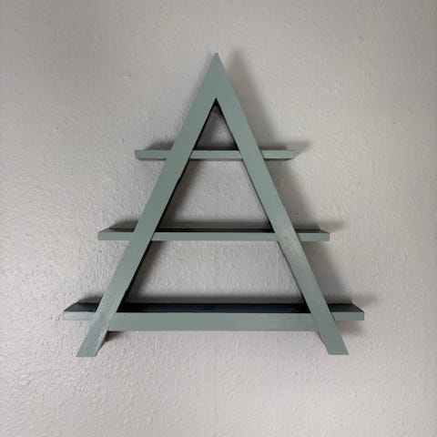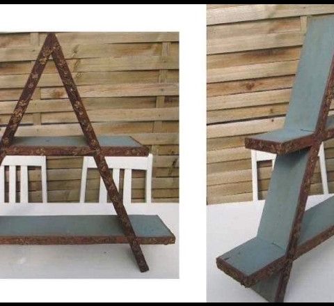 Amagerhylden er udført i gråmalet træ med dekorative udskæringer og malede detaljer langs kanterne. Designet gør den egnet til ophæng på væg og til opbevaring eller udstilling af mindre genstande som pyntegenstande, små planter eller lignende. Hylden har lidt skrammer i toppen.