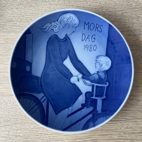 Royal Copenhagen Mors Dag 1976 tallerken blå hvid porcelæn