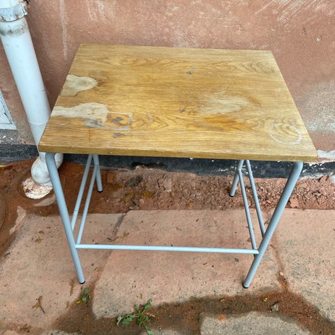Pænt ældre institutionsbord som har fungeret som krea bord her i hjemmet.