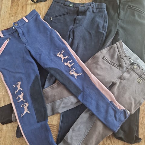 Blandet børnetøj bestående af flere langærmede trøjer med tryk samt en mørk foret jakke med hætte. Tøjet er i forskellige farver, blandt andet grå, hvid, rosa og mørkeblå. Egnet til hverdag og udendørs brug for børn.