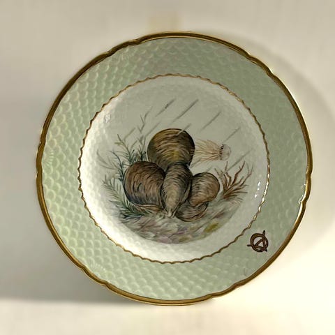 Antikke, smukke og bedårende tallerkner fra Bing og Grøndahl fra før 1895. Har sandsynligvis været i det, der hed Hoveddepot. Her var stel, der ikke altid kom i produktion, opbevaret. Og dermed super sjældne. Alle blomster er unikke. Ingen tallerkner er helt ens.