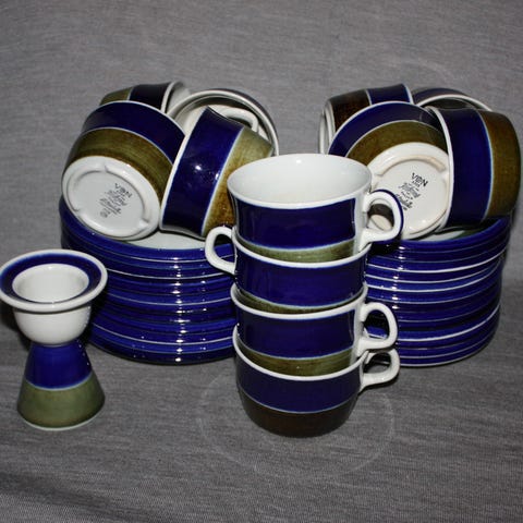 Kaffe-/the kande ( kr. 150), fløde-/mælkekande (kr. 125), 7 kopper m. underkopper (kr. 40/sæt) og 6 kagetallerkener ( kr. 25/stk.). Samlet pris kr. 575. Kun få små brugsspor. Befinder sig i Vejle - alternativ afhentning i Charlottenlund. Kan sendes forsvarligt indpakket for købers regning og risiko. (Sælges ikke via "fix og færdig".)