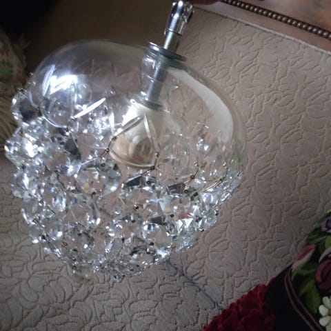 Sælger denne utroligt flotte og dekorative lampe, der giver et fantastisk lys og en helt særlig stemning i rummet. Lampen er prydet med fine prismer og har et elegant, antikt look med fine detaljer i metallet.