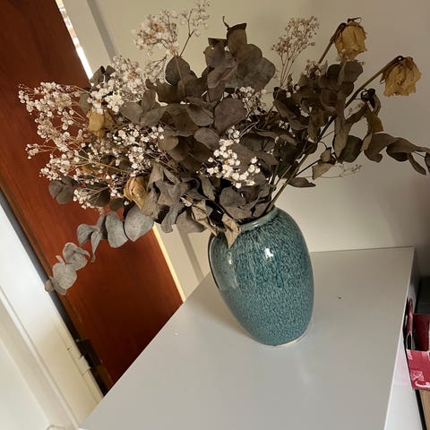 Flot stor evighedsbuket med langtidsholdbare blomster og en diameter på godt 40 cm kan afhentes på Nørrebro. Vasen medfølger ikke.