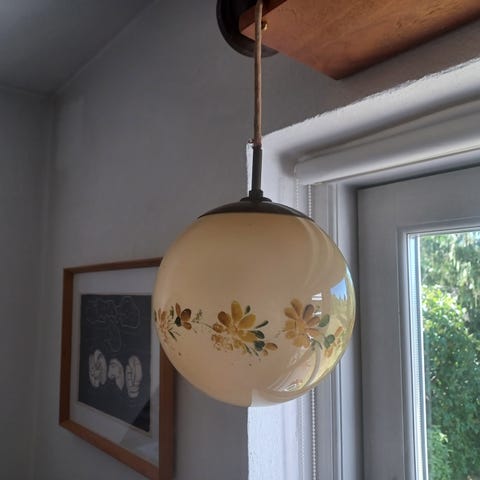 Smuk mokka-cremefarvet loftlampe. Lampen er i rigtig god stand uden ridser - ledning vil man nok ønske at skifte.