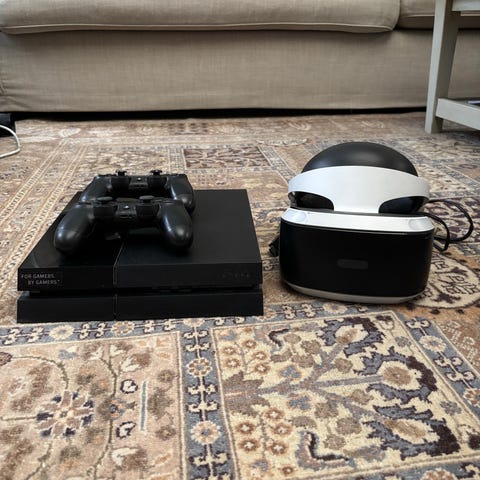 Playstation 4 inkl. 2 controllere + VR pakke med briller, kamera og sticks
