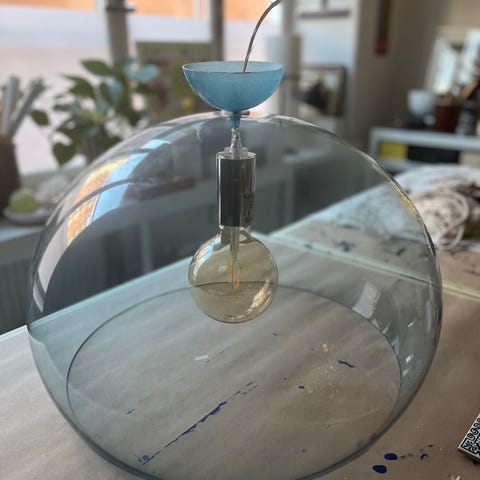 Denne Kartell loftslampe/pendel i blå er brugt men ikke umiddelbart nogle synlige ridser eller andet.