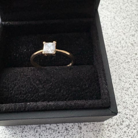 Aveny ring til kvinde i guld med diamantdetaljer. Ringen fremstår som en klassisk model med en central sten og mindre sten langs ringskinnen. Velegnet som smykke til daglig brug eller særlige anledninger. Materialet er angivet som guld med diamant som anden materiale. 14k