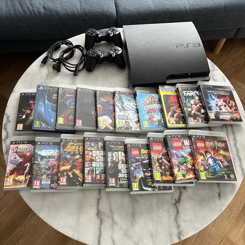 Fin PS3, men to nye controllere. 22 spil bl.a Gran theft Auto 5 og Minecraft.