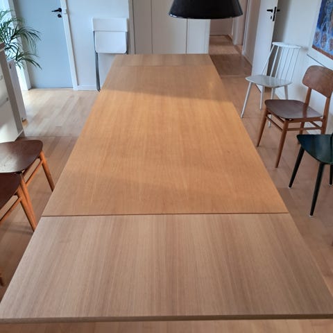 FDB Poul M Volther spisebord, helt fin stand kun lidt slid langs den spidse kant på bordet. Tillægsplader medfører og bordet er pakket sammen i en fin kasse