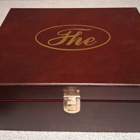 Æske med skydelåg, vintage kasse der har været anvendt til te. Udenpå er påtrykt Ceylon b.o.p direct import. 27x27x27cm.