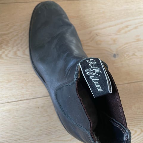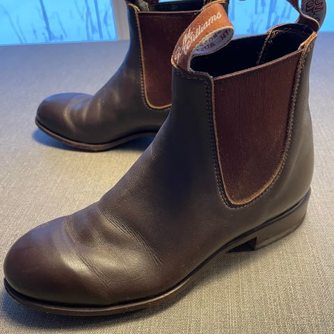 R.M.Williams støvler i str. 36. Klassiske Chelsea støvler i brunt læder med elastikpaneler i siderne og stropper ved skaftet, som gør dem nemme at tage af og på. Glat overlæder og solid sål egnet til daglig brug. Velegnet til både hverdag og fest.