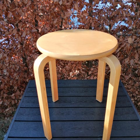 Tidligere siddeskamler omkonverteret til sideborde/natborde/blomsterskamler. Opri delig top fjernet og erstattet med fyldninger fra vægpaneler. Stellet malet med sort oliemaling, og toppen behandlet med skibslak.